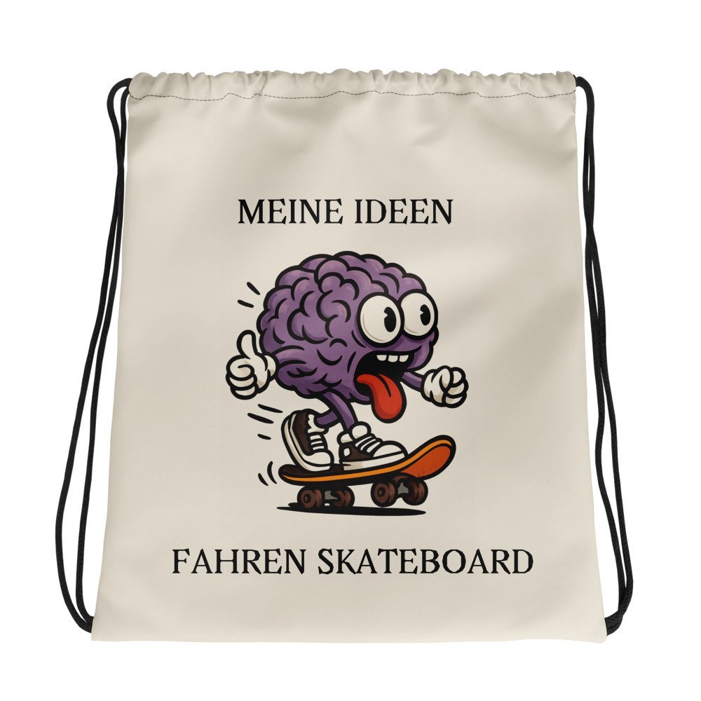 Trag deine Ideen mit Stil! Diese personalisierbare Kordelzugtasche aus robustem 100 % Polyester ist ein Statement für alle, die bunt und kreativ leben. Mit dem frechen Spruch „MEINE IDEEN FAHREN SKATEBOARD“ signalisierst du Tempo, Witz und Power. Perfekt für A4-Unterlagen, Sportzeug und spontane Trips – maximal 15 kg Traglast.
